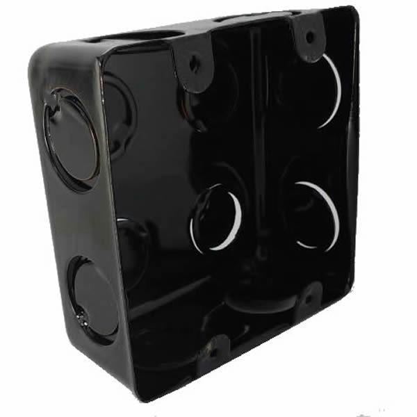 Caixa de embutir para interruptor, ferro, 4x4, quadrada, esmaltada, preta. Furos (Ø) 1/2 "-3/4" - 1"