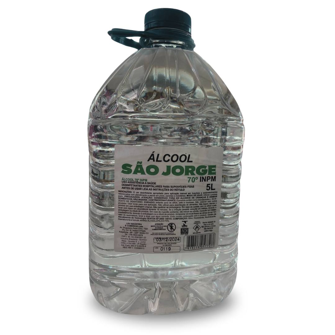 Álcool liquido 70% 5l. SÃO JORGE. Cod. 045728001