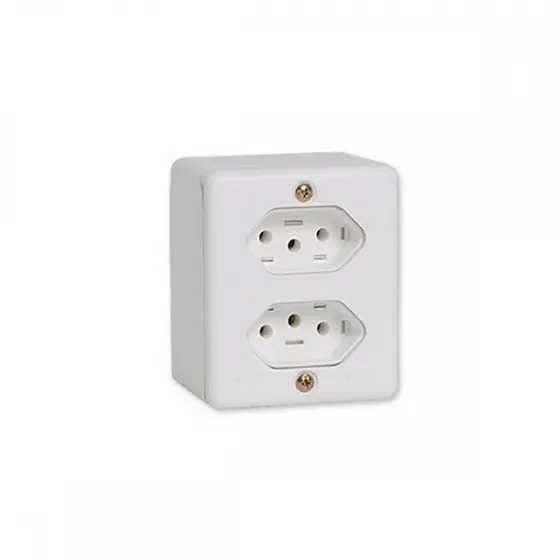 Conjunto de duas tomadas fixas com pinos de aterramento (2P+T), ideal para instalações residenciais ou comerciais que exigem maior capacidade de corrente elétrica. Fabricado com materiais duráveis e design compacto, compatível com caixas padrão tipo 4x2.